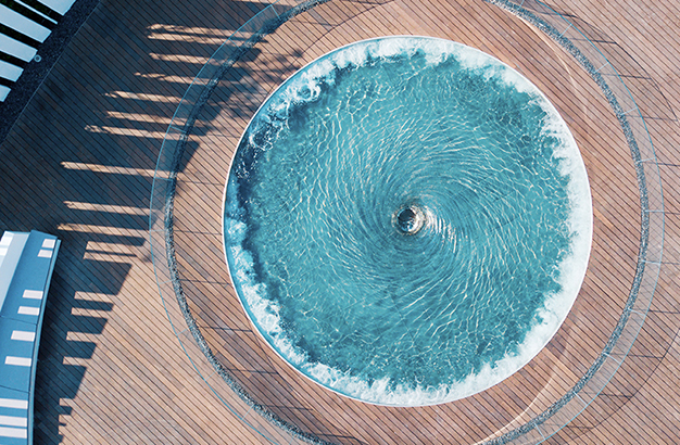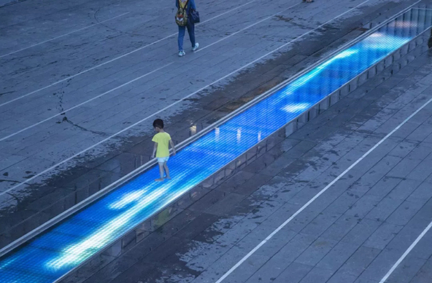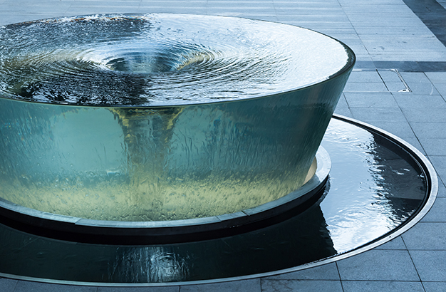水本無(wú)形,它的物理特性讓它能輕易地跟隨容器而呈現(xiàn)不同的面貌。獨(dú)特的延展性使得水能呈現(xiàn)無(wú)以計(jì)數(shù)的不同效果。燈光的布置,介質(zhì)的紋理,顏色和動(dòng)態(tài)都能給水帶來(lái)無(wú)窮的變化。